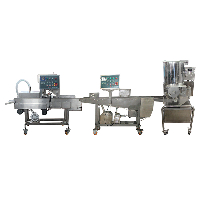 【小型肉餅生產(chǎn)線操作方便,自動(dòng)化程度高。
