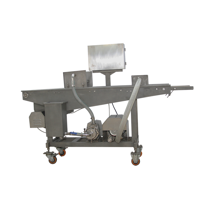 上漿機是通過漿幕和下部的承漿板把漿液均勻粘附在產(chǎn)品上,通過風刀時,多余的漿液被吹掉。然后輸入到下一工序。魚塊掛漿機適合于雞肉、牛肉、豬肉、魚、蝦等海鮮產(chǎn)品,也適用于上面包屑和上粉前的工藝。雞塊上漿機可以對市場上流行的雞排,魚排,漢堡肉餅、麥樂雞塊、魚香漢堡肉餅、土豆餅、南瓜餅、肉串等產(chǎn)品進行上漿處理,是食品工廠理想的上漿設(shè)備。