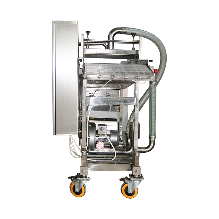 上稀漿機是通過漿幕和下部的承漿板把漿液均勻粘附在產(chǎn)品上,通過風(fēng)刀時,多余的漿液被吹掉。然后輸入到下一工序。淋漿機適用于上面包屑和上粉前的工藝。雞塊掛漿機適合于雞肉、牛肉、豬肉、魚、蝦等海鮮產(chǎn)品,雞塊裹漿機可以對市場上流行的雞腿,雞排,魚排,漢堡肉餅、麥樂雞塊、魚香漢堡肉餅、土豆餅、南瓜餅、肉串等產(chǎn)品進行上漿處理,是食品工廠理想的上漿設(shè)備。