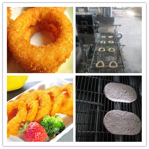 滾筒魷魚圈成型機可以做不同直徑大小的魷魚圈和洋蔥圈,它可以連接不同涂裹設備生產(chǎn)土豆餅,雞肉餅,牛肉餅和雞塊等不同產(chǎn)品,更換模具方便,適合于快餐店和小型連鎖店使用。
